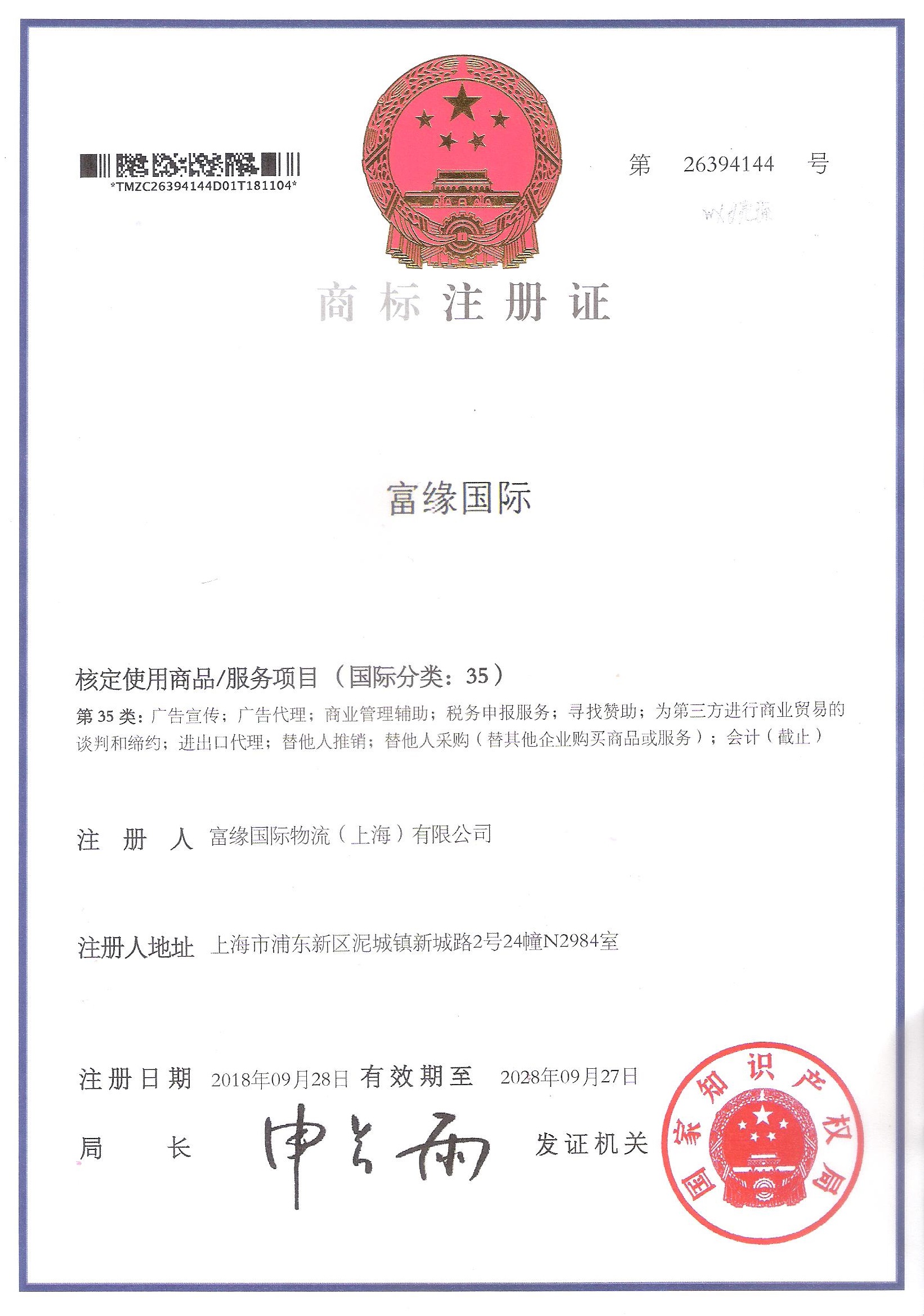 富缘国际物流(上海)有限公司位于中国上海自由贸易试验区,经营范围主要覆盖:普通货运,货物集装箱专用运输,罐式容器货物专用运输,国内道路货物运输代理,国际公路、航空、海上货物运输代理,集装箱拼拆箱,汽车租赁服务,上海货车挂靠服务,人力装卸服务,仓储服务(除危险品), 商务信息咨询,物流信息咨询(以上咨询除经纪),电子产品、通讯设备(除地面接收装置)、汽摩配件、商用车及九座以上乘用车、文化用品、橡塑制品、金属材料、建筑材料的销售,从事货物及技术的进出口业务。